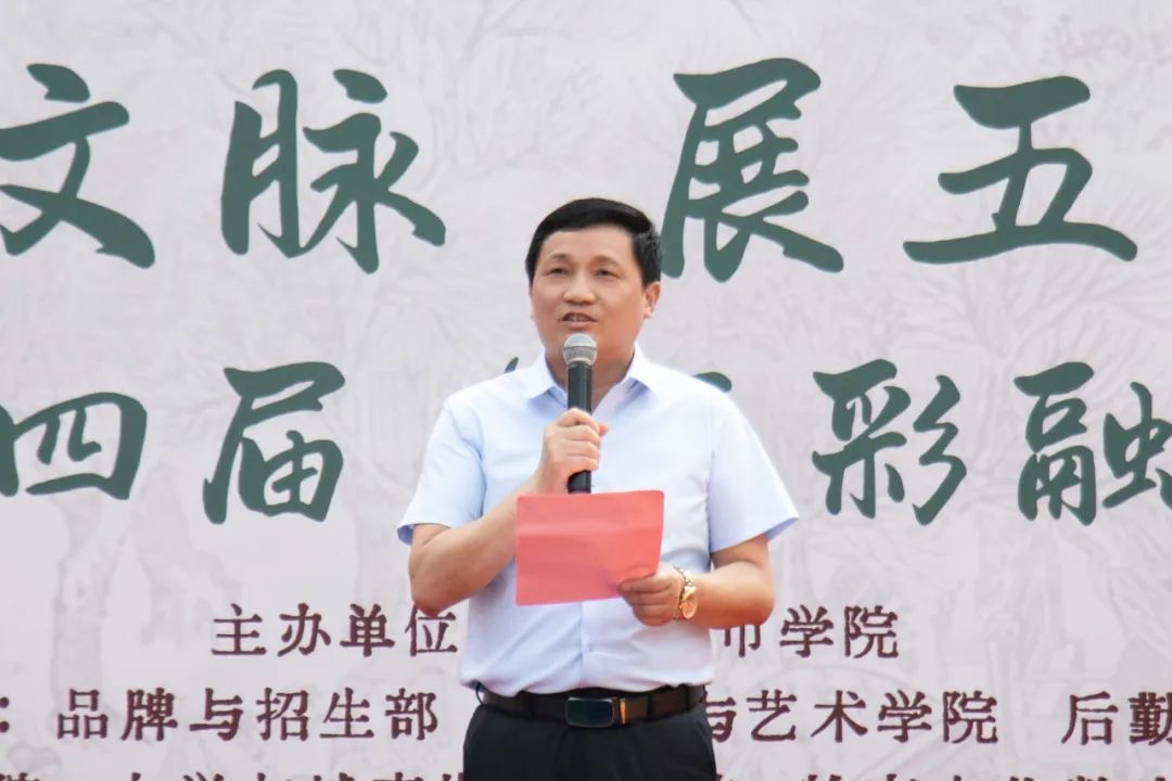 活动伊始,执行校长方伟华致辞。他谈到,近年来学校积极响应国家非遗保护号召,在习近平文化思想指引下,高度重视非遗与传统文化传承。通过打造“非遗文化园”、建设特色雕塑、开展数字化建设等,在非遗研究与教科研领域成果丰硕;各学院也积极创新融合非遗元素,推出歌舞剧、音乐作品、沉浸式戏剧等艺术创作,并将实践与乡村振兴结合,屡获佳绩。未来,学校计划成立“非遗学院”,利用网络电视台传播非遗。本次文化节展示非遗赋能成果,旨在探索文化传承创新,打造学校非遗文化品牌,推动非遗保护与传承。