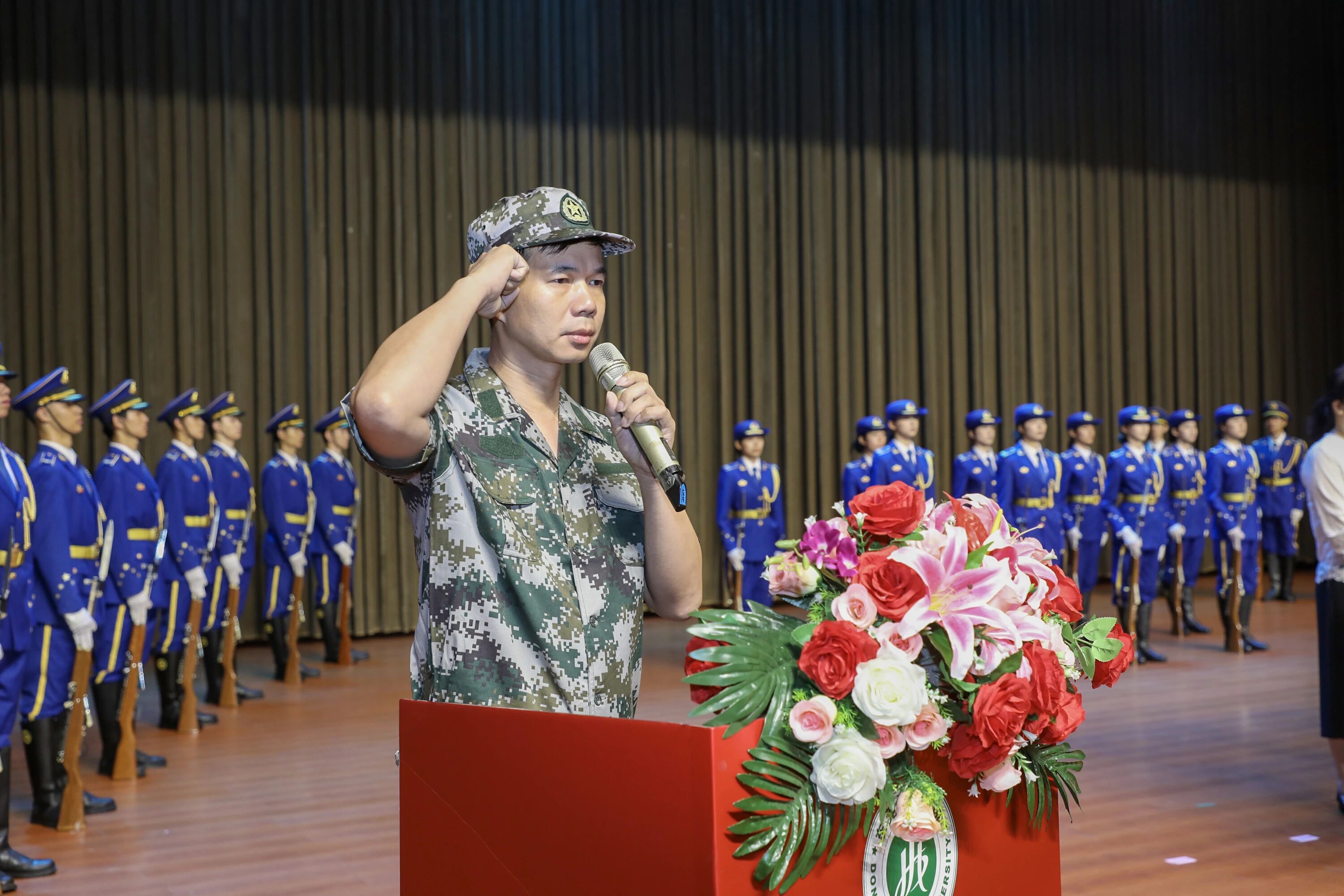 “厚德务实,励精图治;知行合一,服从号令;笃学敏行,砥砺奋进;自信自律,强国振兴”学校党委书记魏东初带领全体军训新生进行庄严宣誓。