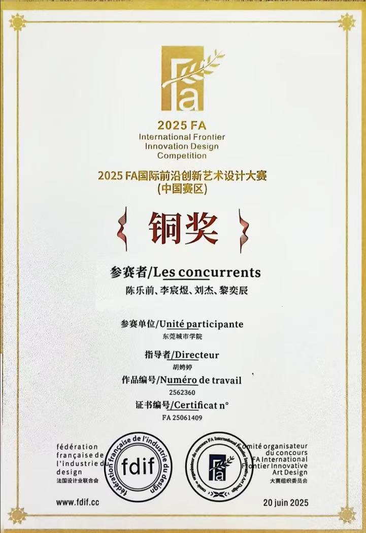 FA国际前沿创新艺术设计大赛是全球最具影响力与前瞻性的艺术设计赛事之一,竞争激烈,含金量十足。此次获奖不仅是对同学们专业能力的充分肯定,也是beat365官网跨学科教学成果的重要体现。让我们向获奖同学及老师表示热烈祝贺!期待全院师再接再厉,在更多国际舞台上展现城建与智造学院的风采!