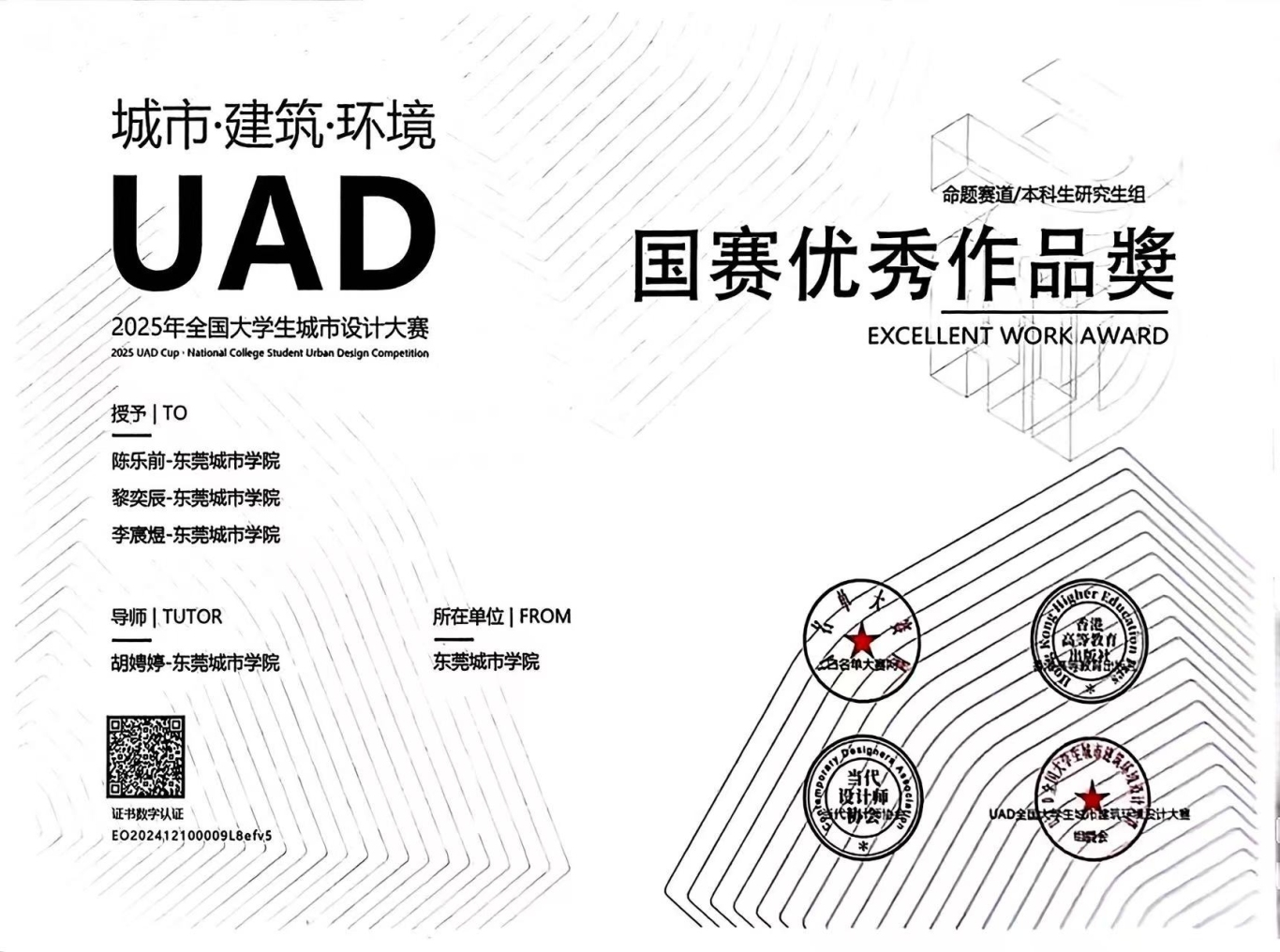 作为响应国家“绿色低碳发展战略”的重要赛事,UAD杯始终聚焦“可持续城市设计”。城建与智造学院学子紧扣国务院《关于加快建立健全绿色低碳循环发展经济体系的指导意见》,将“低碳技术”与“空间美学”深度融合——这份获奖成绩单,正是学院“以赛促学、以创赋能”教学理念的最佳答卷!