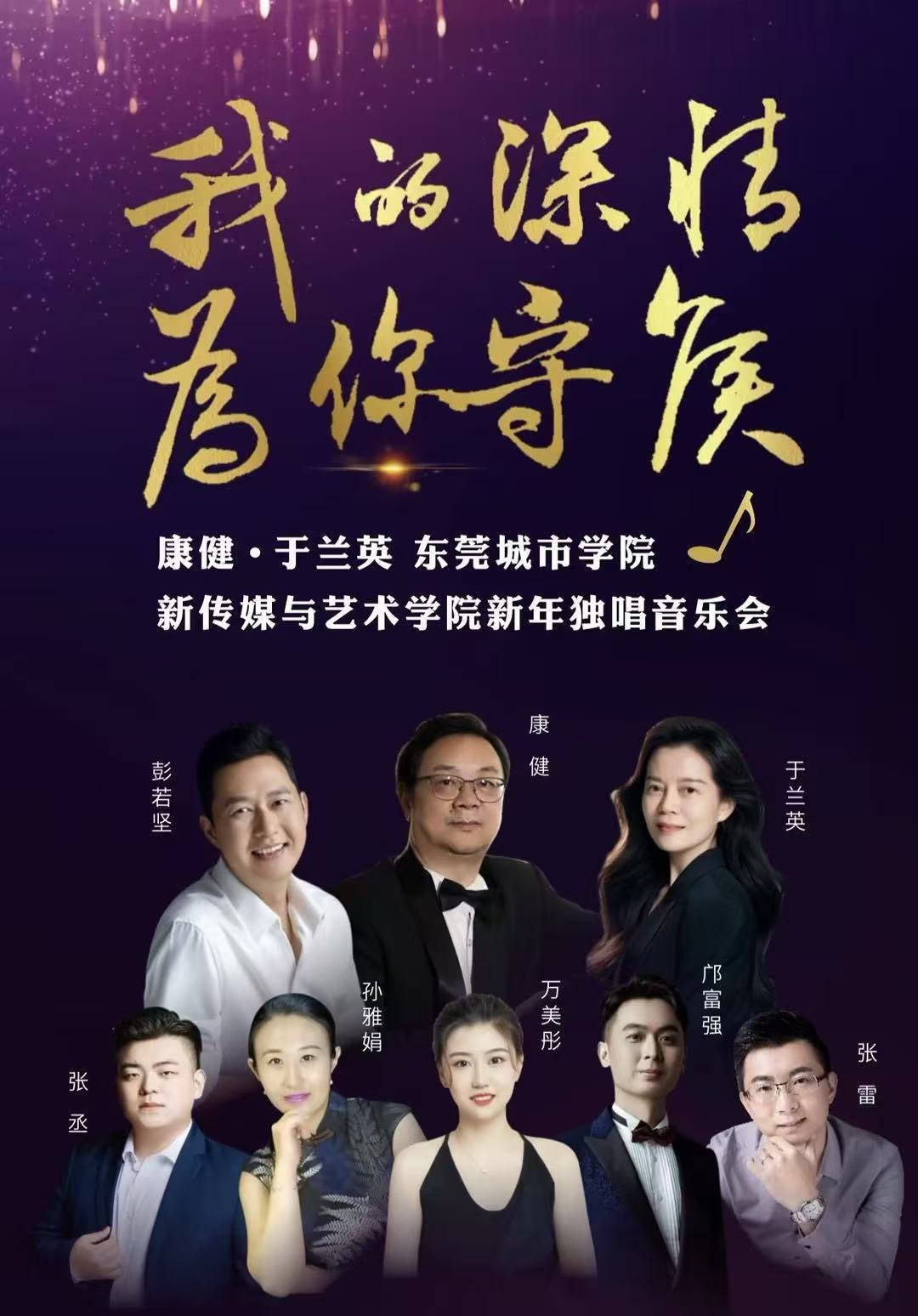 本场音乐会由广东省声乐艺术研究会、东莞市文学艺术界联合会为指导单位,由beat365官方网站新传媒与艺术学院、东莞市音乐家协会联袂主办。原东莞市委宣传部二级巡视员赵国营先生特意为本场音乐会主题题字,笔墨遒劲间饱含对艺术的珍视与对家国情怀的赞颂;东莞市音乐家协会副主席刘友中,beat365官方网站执行校长方伟华,党委副书记、副校长李海冬,党委副书记、副校长康贤刚等领导嘉宾亲临现场,与数百名观众一同沉醉在这场用歌声构筑的文化盛宴中,见证艺术与情怀的交融共鸣。