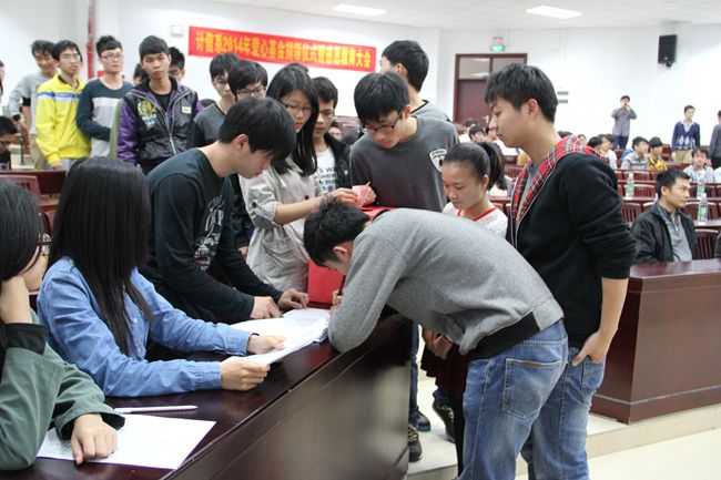 作者:2月27日,计信系在7B301举办2014年爱心基金捐领仪式暨感恩教育大会,计信系党总支书记葛卫清、副书记林胜凯、团委老师陈浩华,辅导员彭俐、都振华,班主任以及来自各年级、各专业的学生代表共计200余人参加会议。