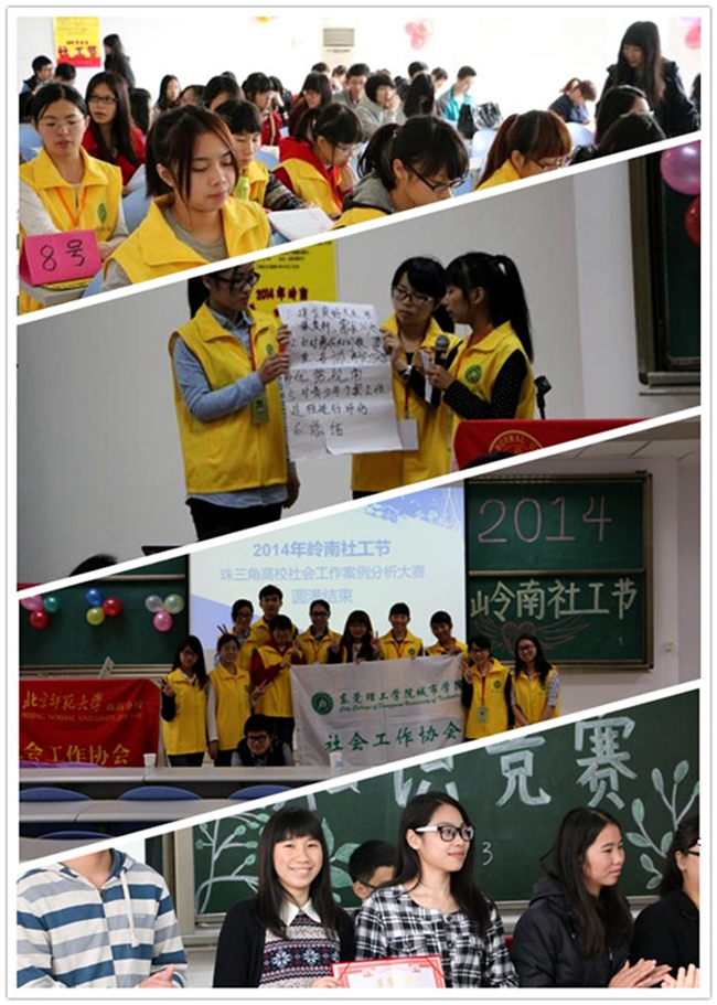 本次活动是由广东省民政厅主办,珠海市社会工作协会承办,主要参与的高校有广东外语外贸学院、北京师范学院珠海分院、吉林大学珠海分院、东莞理工学院城市学院及珠海职业技术学院,其主要内容分为“学生团体案例分析大赛”、“UIC讲座”、“社会工作专业工作坊”和“社会工作专业知识竞赛”四个部分。