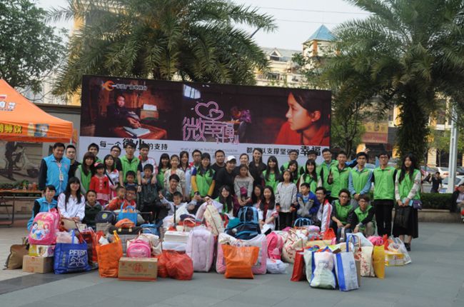 3月22日晚,我系志愿队在大学生活动中心,为9名来自贵州和茂名高州的贫困家庭孩子举办了小型欢迎晚会。本次活动是东莞广播电视台《家园故事汇》栏目 “微幸福计划”的部分内容,邀请了9名贫困家庭孩子来莞体验生活,对孩子们来说,他们是第一次走出大山看世界。