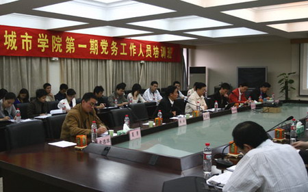 上午,城市学院党委书记朱志德同志作了讲话,他对我院党务工作情况进行了回顾,对今后的党务工作提出了要求。他说,我院党务工作状况良好,机构日趋完善,制度日趋健全,队伍日趋壮大,但也出现了一些问题。东莞理工学院党委委员、组织部部长杨振标同志作了“充分认识基层党组织的性质和作用”的报告,对党总支的工作进行了高度概括,对存在的问题进行了深刻的分析并提出要求和建议。东莞理工学院组织部组织科副科长萧炽成同志作了“党员发展有关程序和注意事项”的报告。