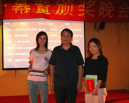 读书节开幕式之后,参加开幕式的老师为“立志•修身•博学•报国”征文比赛的获奖同学颁奖。
