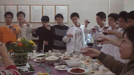学院领导与留校学生同饮新春喜酒,互致新年的祝词。