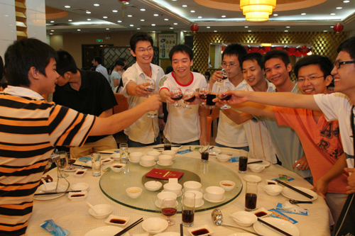 会议由傅萱、陈俊杰同学主持,系主任徐中和教授致辞。毕业生代表蔡小玲、赵伟雄发表毕业感言,起大学生活的点点滴滴,言语中充满着留恋与不舍。在毕业生们浓浓的回忆中,系学生会精心策划的舞台剧《forever friends》悄然上演。熟悉的情境在音乐的衬托下令毕业生们回味无穷。最后,在系党总支副书记吴春庚老师的带动下,毕业生全体起立举杯祝酒,将酒会的气氛推向高潮。