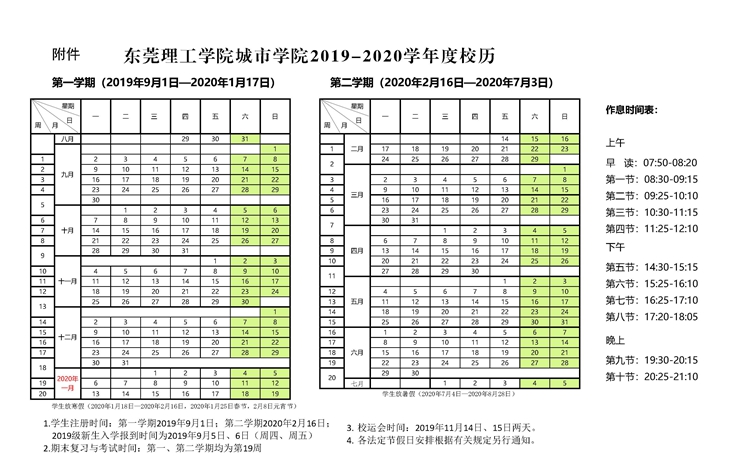 东莞理工学院城市学院2019-2020学年校历