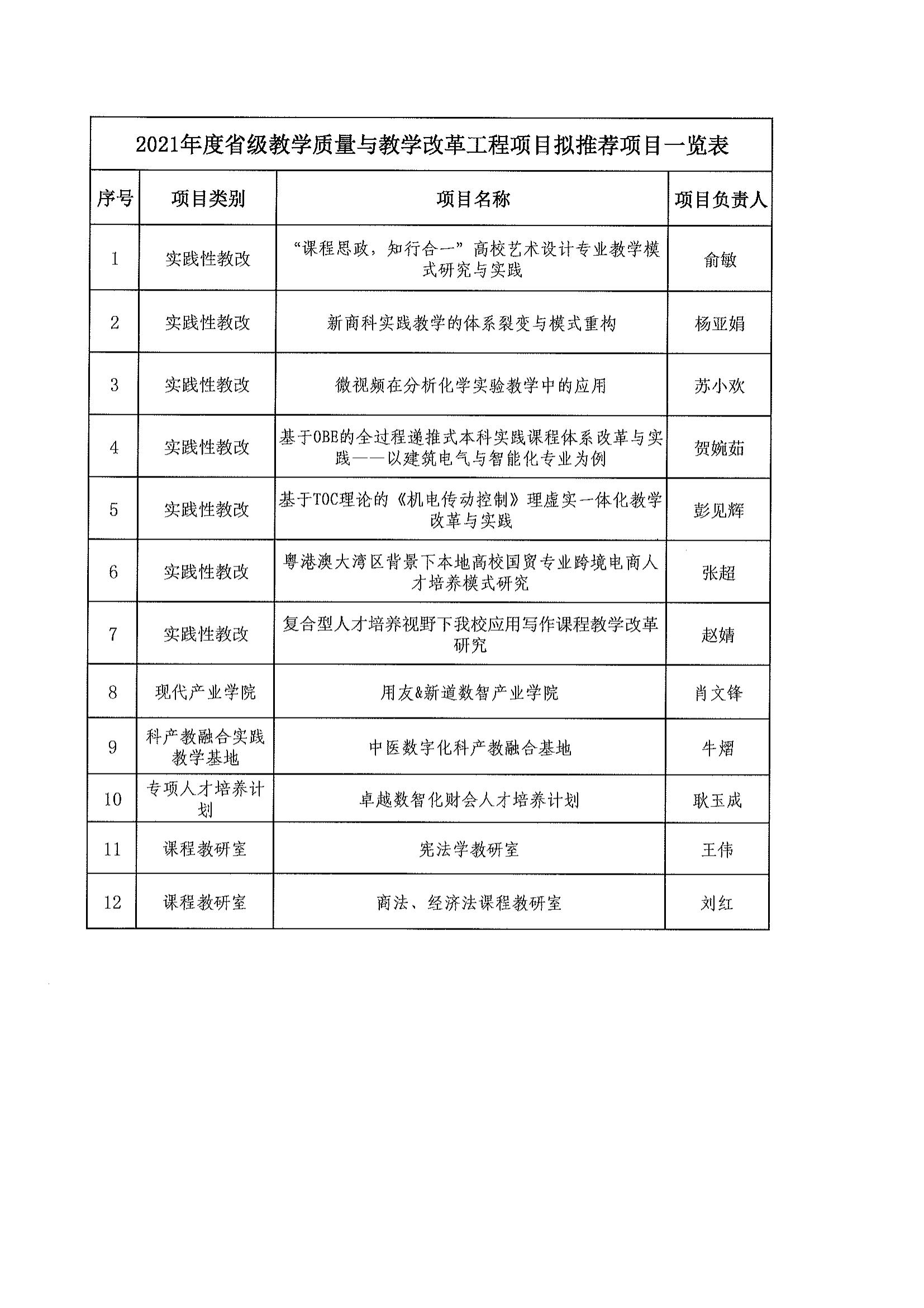 关于2021年度省级教改项目拟推荐项目的公示