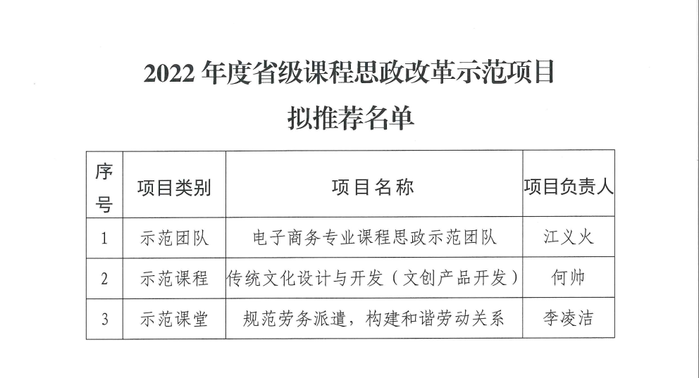 根据《广东省教育厅关于开展2022年度广东省本科高校教学质量与教学改革工程项目申报推荐工作的通知》精神,beat365官网开展2022年度省级课程思政改革示范项目申报推荐工作。经个人申报、学院推荐、教务处审查、校外专家评审等程序,拟推荐省级课程思政改革示范项目3项。具体名单详见附下图。