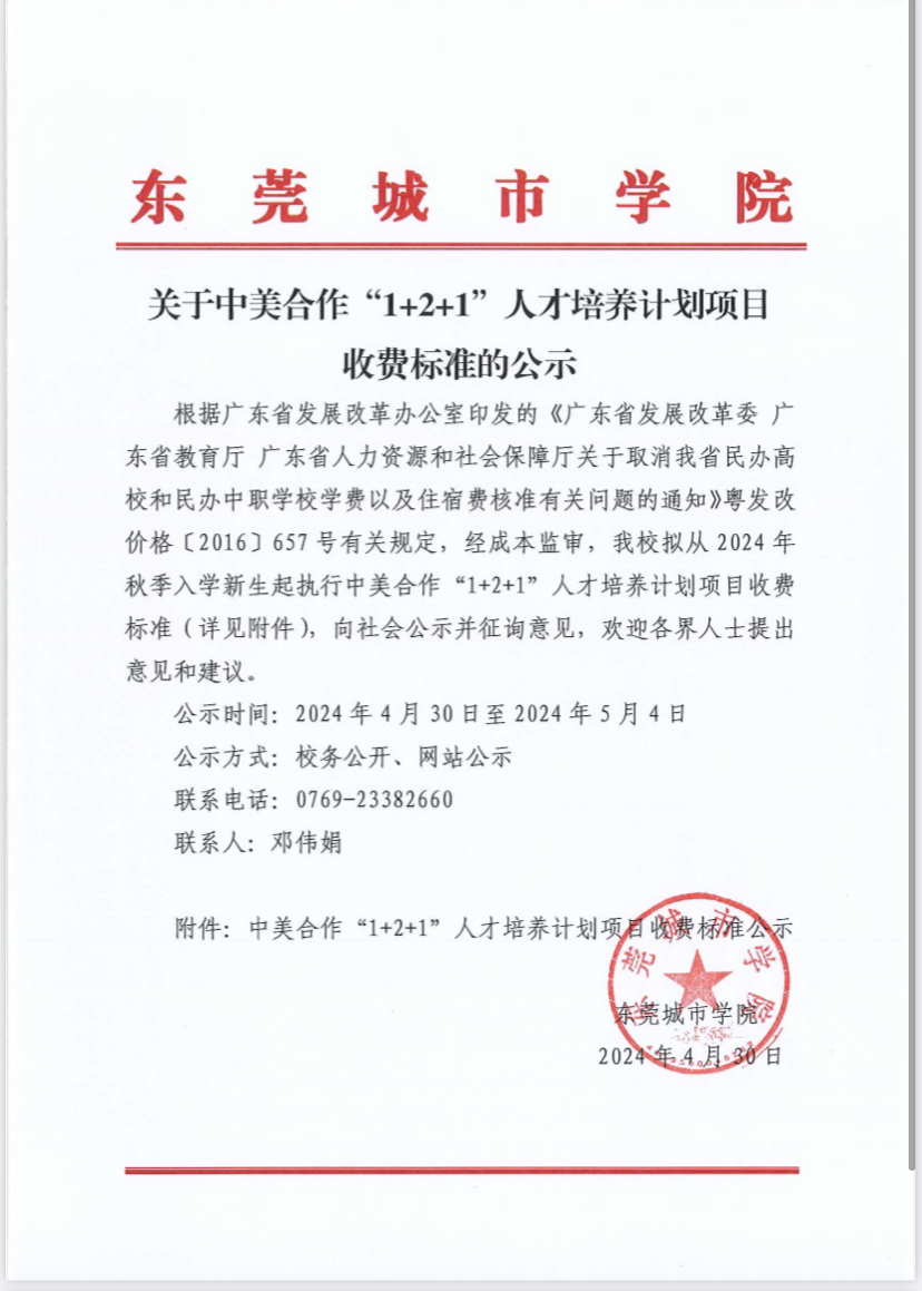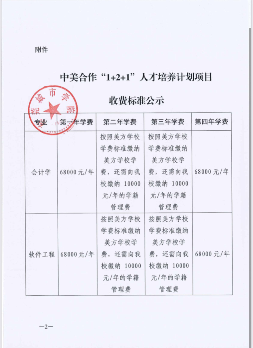 关于中美合作“1+2+1”人才培养计划项目收费标准的公示
